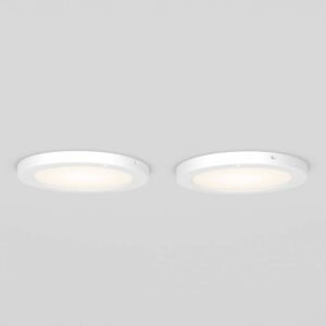 This set includes 2 LED ceiling lights and does not require any bulbs. It delivers a brightness of 1200 lumens. The lifespan is 50,000 hours.