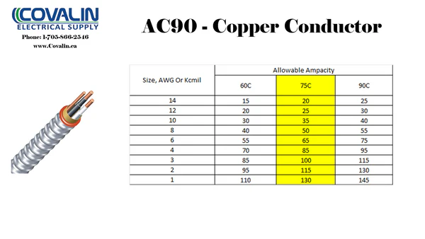 1. Southwire AC90 armoured electrical cable is manufactured using copper conductors with PVC/nylon insulation and a bare copper ground wire wrapped with bare interlocked aluminum armour.