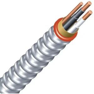 Armoured electrical cable with copper electrical wire. 14 AWG AC90 includes 2 copper wires and one ground wire. Used in dry locations only, for open and concealed electrical wiring as well as cable troughs and ventilated flexible cableways.